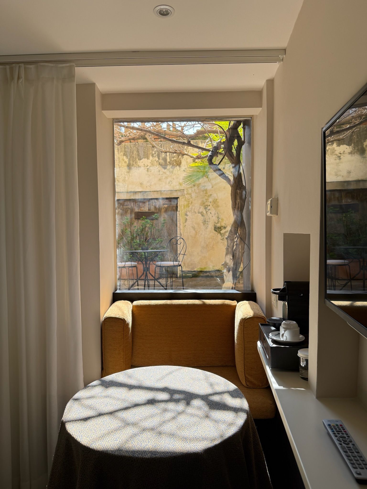 Large 36 sqm room, with exclusive hanging garden. Exposed beams, fine rugs and elegant mosaic tiles in the bathroom will make you feel like you're in a luxury fairytale.